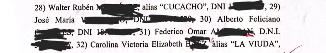 En el listado de personas incluidas en la medida judicial figura un hombre identificado como Walter Rubén M., alias “Cucacho”, quien sería una de las personas bajo investigación. De acuerdo a distintas fuentes, el mismo sería el esposo de la funcionaria.